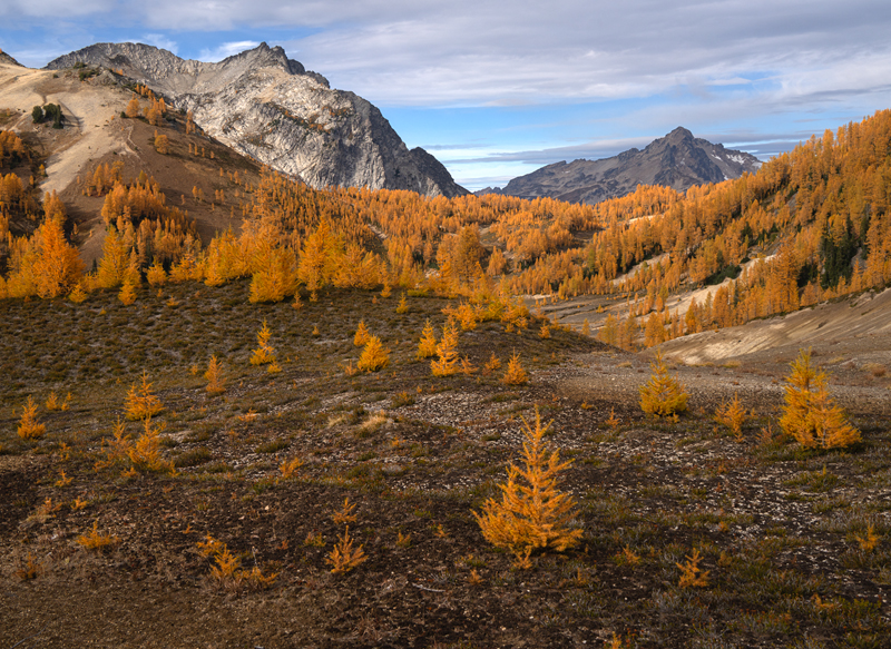 Larch Trees with Mt Berge and Fortress Mtn