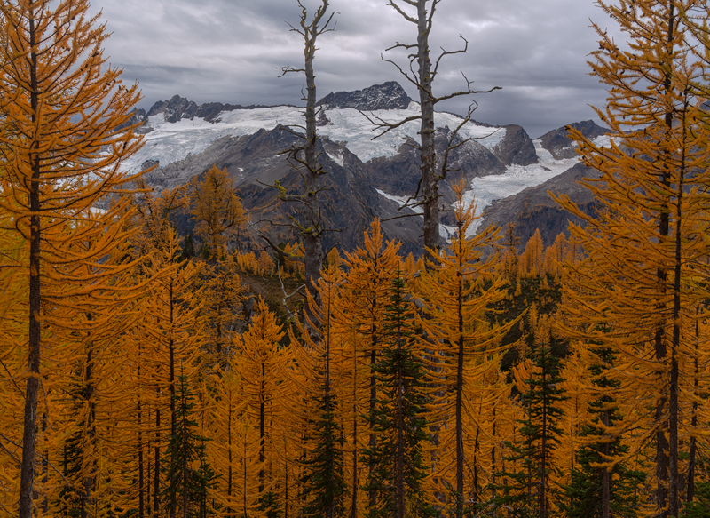 Clarke Mtn Framed by Larch Trees